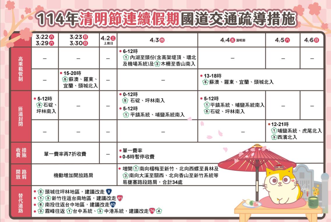 2025年清明高乘載、入口匝道封閉、路肩開放、收費措施一次看