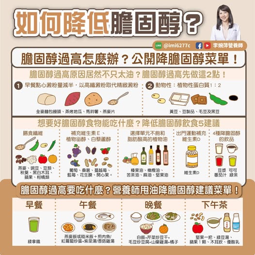 原文名稱為:如何降低膽固醇?膽固醇過高怎麼辦?公開降膽固醇菜單!