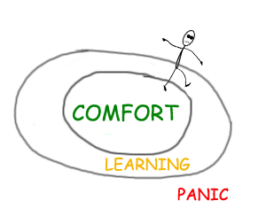 在心理學中,人處於舒適圈之外一點的「伸展區」(Stretch Zone),又叫學習區(Learning Zone),最能使我們創造更多的可能。伸展區裡是我們未涉足的領域,那裡有充滿魅力的事物、吸引人目光的趣味,也有挑戰自我的生命任務。只有我們「循序漸進」地嘗試新鮮事物、做些「改變」,我們就可以拓展自己的生命經驗,發揮潛力。而過了伸展區就到「恐慌區」(Panic Zone)了,若是感到過多的恐慌與緊張也是無法學習到新事物的。